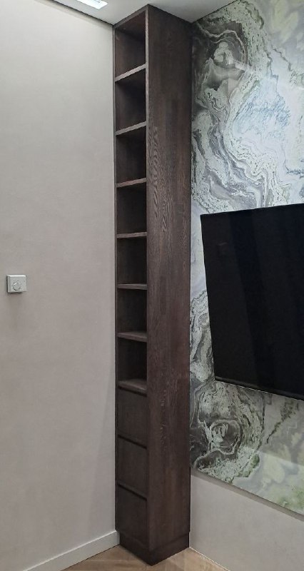 ✅ В данном случае, шкафчик-стеллаж из массива сращенного дуба, с тройным покрытием маслом и тонировкой 8546-Венге.